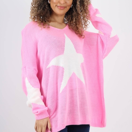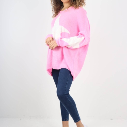 This Oversized Star Print Knitted Jumper Top is fun, cozy, statement piece your wardrobe has been waiting for. Its playful star design instantly catches attention while offering a sense of warmth and personality. Designed with a flattering oversized fit, this jumper caters comfortably to UK sizes 8–16. The knitted fabric is soft to the touch, breathable, and perfect for layering through autumn and winter. Whether you’re a boutique owner stocking fresh trends or someone searching for that perfect everyday knit, this one is a clear standout. Ideal for coffee runs, casual days out, or cozy nights in, this jumper is versatile enough to style in countless ways. Pair it with pants and trainers for a relaxed look, or tuck it into faux leather trousers and boots for something more dressed up. The star print adds a bold yet wearable edge that makes styling easy and fun. With a wide range of colours to choose from think neutrals for everyday wear or bolds for a pop of personality, this jumper offers something for every mood and setting. The perfect mix of fashion, comfort, and charm, this is your new favourite. Jumper Top Knitwear Star Print Oversized Long Sleeve Made in Italy One Size To Fit UK 8-20