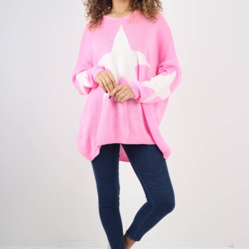 This Oversized Star Print Knitted Jumper Top is fun, cozy, statement piece your wardrobe has been waiting for. Its playful star design instantly catches attention while offering a sense of warmth and personality. Designed with a flattering oversized fit, this jumper caters comfortably to UK sizes 8–16. The knitted fabric is soft to the touch, breathable, and perfect for layering through autumn and winter. Whether you’re a boutique owner stocking fresh trends or someone searching for that perfect everyday knit, this one is a clear standout. Ideal for coffee runs, casual days out, or cozy nights in, this jumper is versatile enough to style in countless ways. Pair it with pants and trainers for a relaxed look, or tuck it into faux leather trousers and boots for something more dressed up. The star print adds a bold yet wearable edge that makes styling easy and fun. With a wide range of colours to choose from think neutrals for everyday wear or bolds for a pop of personality, this jumper offers something for every mood and setting. The perfect mix of fashion, comfort, and charm, this is your new favourite. Jumper Top Knitwear Star Print Oversized Long Sleeve Made in Italy One Size To Fit UK 8-20
