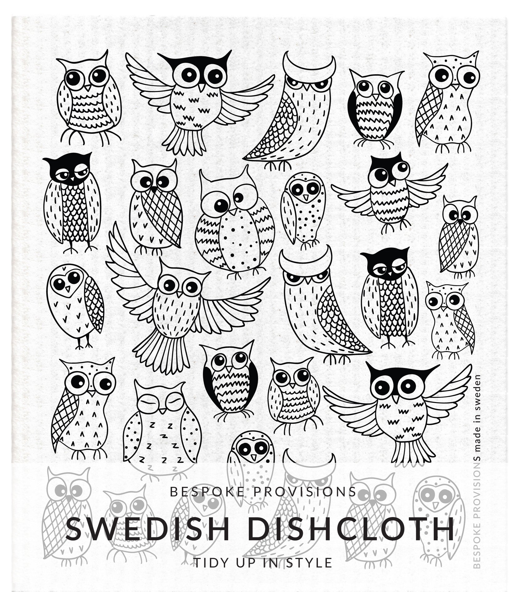 Our fun Owls Swedish Dishcloths are made from an all natural pairing of cotton/cellulose and the material is more hygienic than a sponge.