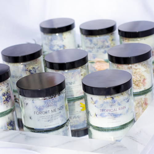 A blend of epsom and dead sea salts infused with a therapeutic combination of essential oils – perfect for unwinding and relaxing. Your bath salts will arrive to you in a resealable glass jar which can be cleaned out and reused.