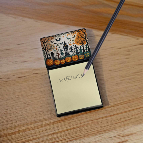 Celebrate Halloween with this Halloween Sticky Note Holder. Add a touch of creativity and flair to your desk with the Decorative Sticky Note Holder from Caroline’s Treasures. This uniquely designed sticky note dispenser will not only keep your notes in one place but also add an artistic element to your workspace. The top of the holder features beautiful artwork that is sure to catch the eye. Crafted for convenience, this sticky note holder comes with a small pad of 3-inch x 3-inch sticky notes at the bottom. The holder is designed for easy refilling; simply remove the last sheet of a new sticky note pad and stick it onto the board. This feature ensures you will always have sticky notes at your disposal. This Sticky Note Holder makes a perfect gift. Be it for your colleagues at work, your Facebook friends, or even your dog groomer or hairdresser, this versatile product fits the bill. You can use it for making grocery lists, leaving notes for loved ones, or for jotting down important reminders. The bottom board is rigid and can be magnetized by adding a business card size magnet to the back (sold separately). This makes it even more versatile, allowing you to place it on a refrigerator or any other magnetic surface. With this Sticky Note Holder, you’re not only organizing your notes, but also personalizing your space.