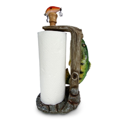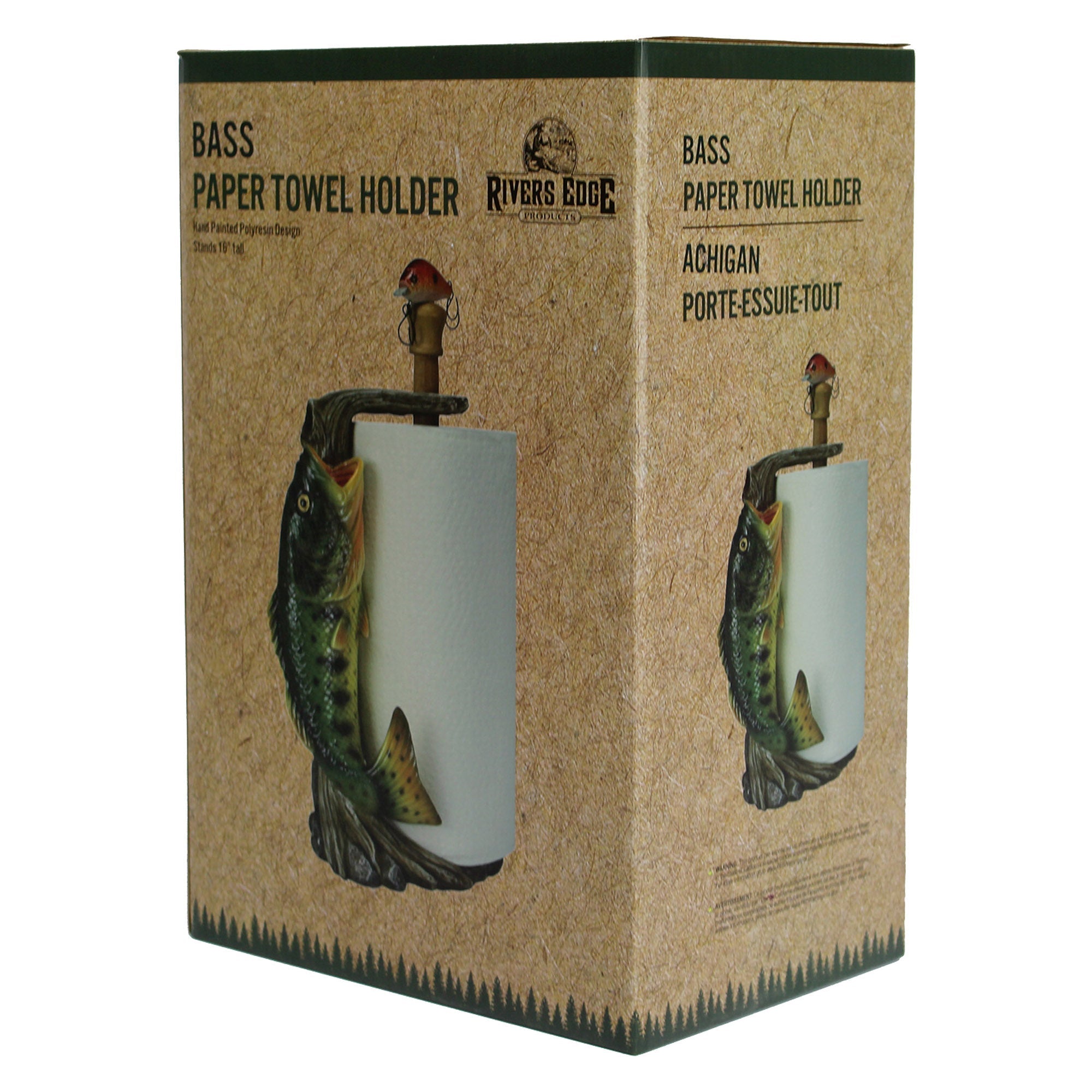This paper towel holder from River’s Edge Products is designed to sit on a kitchen countertop so you can keep your paper towels conveniently within reach. This paper towel holder features a big bass fish. The bass fish paper towel holder will bring some flair into any kitchen.Features: Poly resin Hand painted 16 inches tall Compatible with standard 11 inch tall paper towel rolls