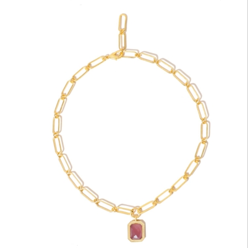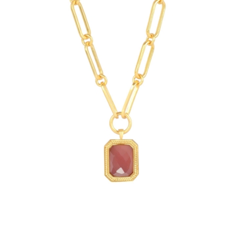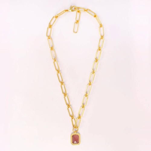 Exude modern elegance with this stunning Rectangular Gemstone Pendant Necklace. Featuring a beautifully cut rectangular gemstone, this pendant dazzles with its refined facets that catch the light from every angle. The sleek paperclip chain adds a contemporary touch, perfectly complementing the pendant’s timeless charm.Designed for versatility, this necklace effortlessly enhances both casual and formal looks, making it an essential addition to your jewelry collection. Its clean lines and sophisticated style ensure it stands out, whether worn solo or layered with other pieces.22ct gold plate BrassLength: 21 inches Pendant : 2cmx 1.7 cm Adjustable to any link