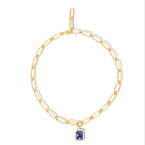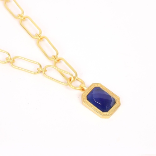 Paperclip Chain Rectangular Blue Sapphire Crystal