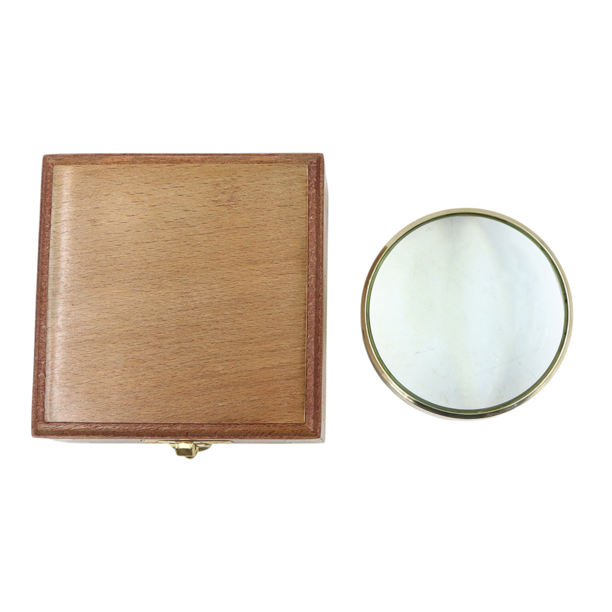 ▬ 𝗣𝗥𝗢𝗗𝗨𝗖𝗧 𝗗𝗘𝗧𝗔𝗜𝗟𝗦 ▬ Made from solid brass and high quality glass, this elegant piece is both functional and decorative, perfect for reading fine print, examining details. It comes in a handcrafted wooden presentation box, making it an ideal gift for collectors, readers, writers, or anyone who appreciates finely made tools with heritage appeal. Product details:• Magnifying glass size: 8 x 8 x 4 cm (3.1 x 3.1 x 1.6 in)• Wooden box size: 10 x 10 x 6.5 cm (3.9 x 3.9 x 2.6 in)• Materials: Brass, Glass, Solid Wood• Magnification: Approx. 5x Materials:- Brass, Glass