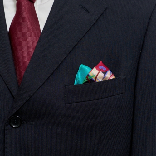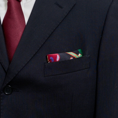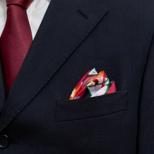 Introducing our “Party Time” men’s silk pocket square, a vibrant fashion pocket square that adds a splash of color and cheer to any outfit. Inspired by tropical drinks from our travels in Cartagena, this elegant pocket square features a bold design that brings fun and sophistication to your look. Crafted from luxurious silk, it serves as a high-quality silk handkerchief and a designer handkerchief perfect for both casual and formal occasions. Elevate your style with this classic men’s fashion accessory, an ideal choice for any celebration. 100% mulberry silk Measurements: 15.7 inches x 15.7 inches (40 cm x 40 cm) Dry clean only How tofold a silk pocket square? Begin with the silk pocket square face down. Fold in half from right to left. Fold in half from left to right leaving a gap at the right side. Fold in half from top to bottom. Fold the bottom up and behind the front. Adjust to fit the size of your jacket pocket.