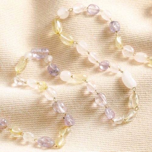 With an array of natural shapes, each unique stone is threaded onto a delicate golden chain. Perfect for bringing a crystal finish to your outfits, this piece is great for layering. Fastening with a lobster clasp, this necklace can be adjusted to find the best length.Dimensionsnecklace length – 40cm (15.7″) with a 6cm extender chainMade fromsemi-precious stone, 14ct gold plated brass