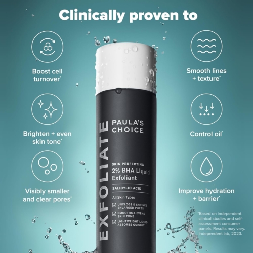 Paula’s Choice SKIN PERFECTING 2% BHA Liquid Exfoliant is a globally celebrated daily leave-on solution formulated with salicylic acid to deliver visibly clearer and smoother skin. Designed for all skin types—including oily, combination, dry, and normal—this powerful exfoliant penetrates deep to unclog pores, combat blackheads, smooth rough texture, and diminish the appearance of fine lines and wrinkles. The lightweight, fragrance-free liquid absorbs quickly without irritation or residue.