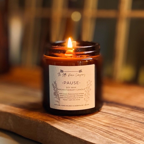 Our Soy Wax Aromatherapy Candles contain 100% pure, natural, and organic ingredients. Soy Wax is non-toxic, biodegradable, and clean burning.