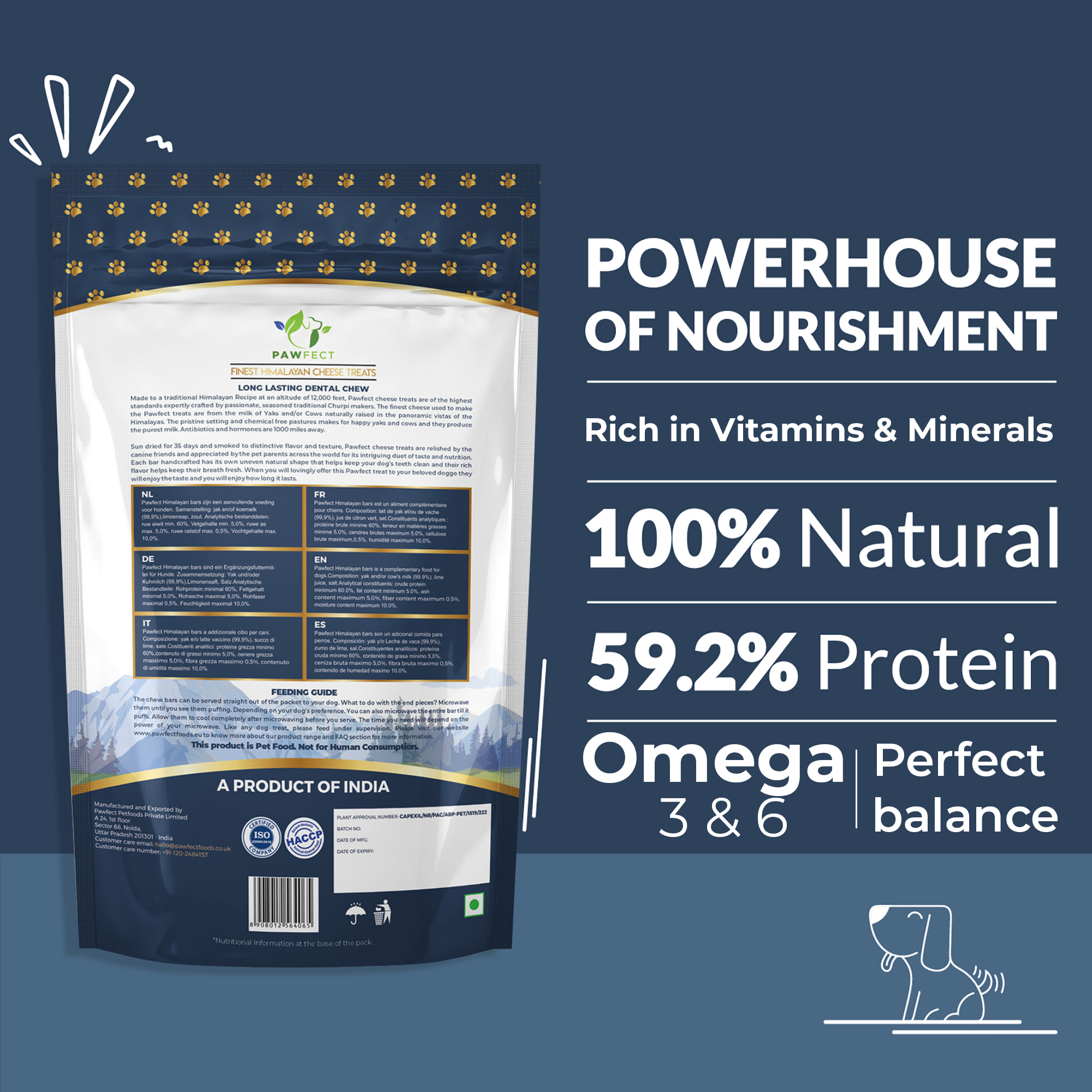 A Natural way to clean your dog’s teeth, freshen breath, reduce plaque and tartar- all while they relish their favourite Himalayan Cheese Chew infused with the finest natural ingredients. ✔️ 100% Himalayan Cheese: Provides high-quality protein and calcium for strong bones and muscles.✔️ No Artificial Additives: Free from preservatives, fillers, and artificial flavors.✔️ Grain & Gluten-Free: Ideal for dogs with dietary sensitivities.✔️ Human-Grade Quality: Only the best ingredients for your dog’s health.