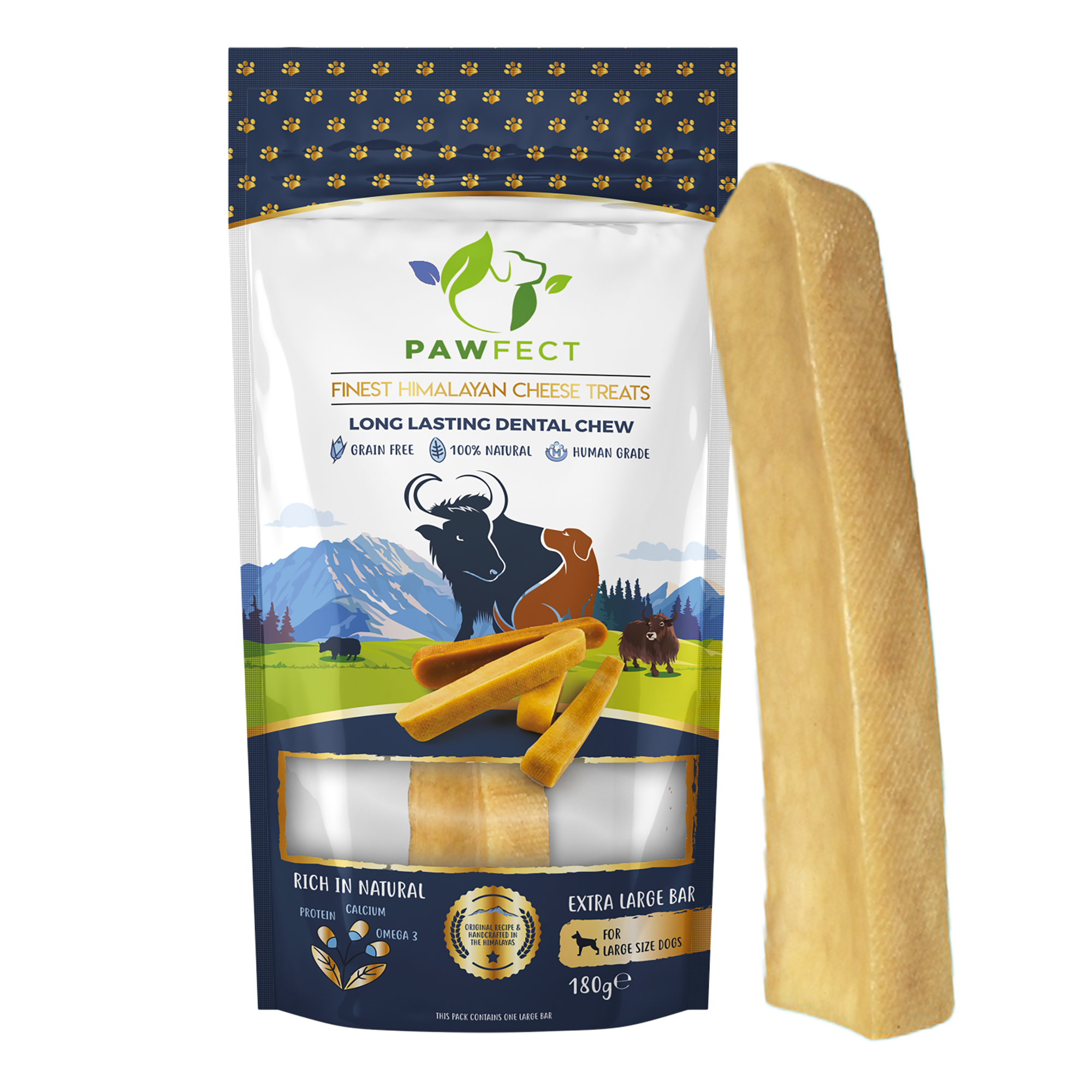 Pawfect Himalayan Cheese Chews for Dogs | 100% Natural | Long lasting Dental Stick | Rich in Protein & Calcium | Grain-free| Daily dental treat| Pack of 1 for Extra Large Dogs (180g/6.35oz)