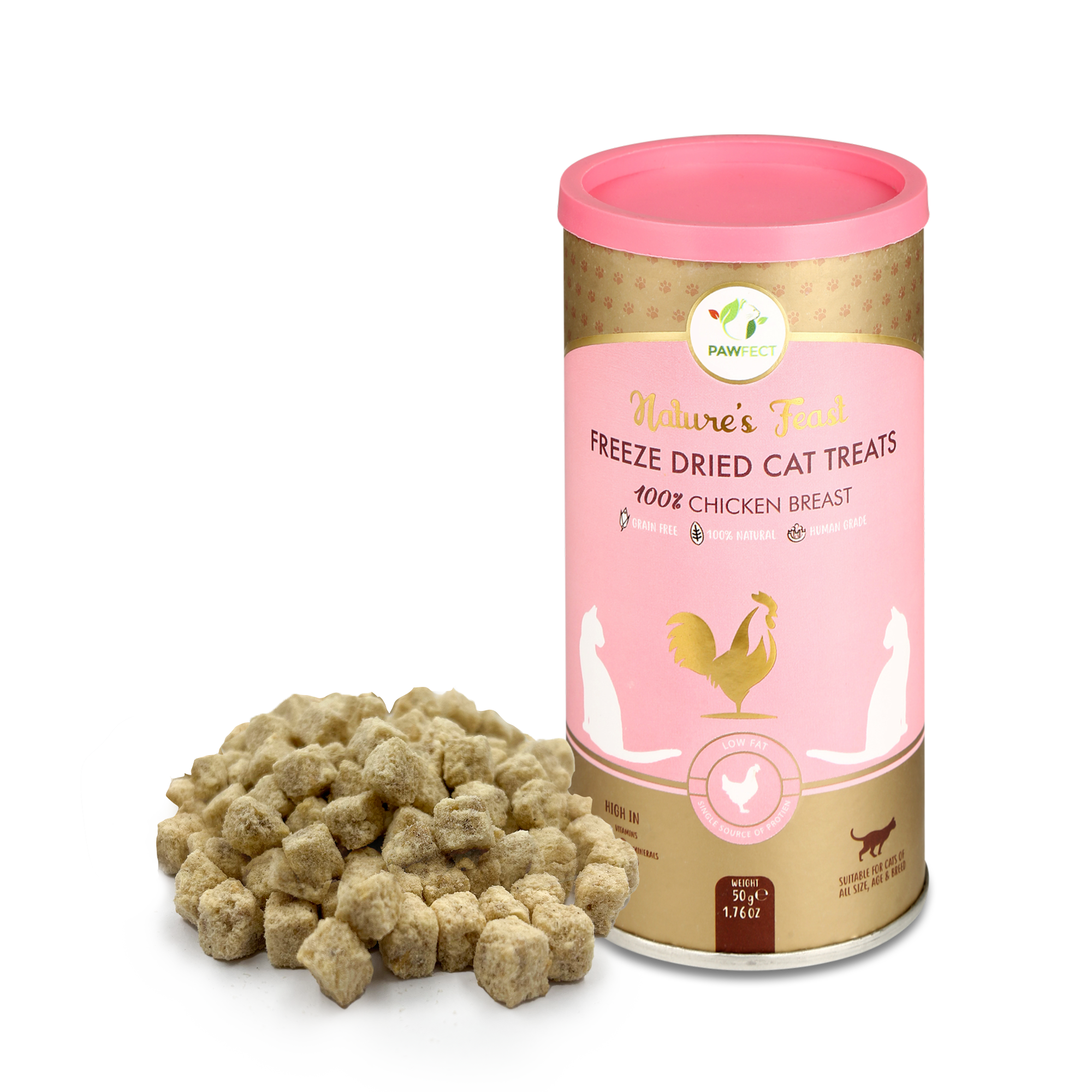 Pawfect Nature’s Feast Freeze-Dried Chicken Breast Treats for Cats | Low Fat for Weight Control & Muscle Care | 100% Natural | Grain-Free | Hypoallergenic | Training Treat (50g/1.76oz)