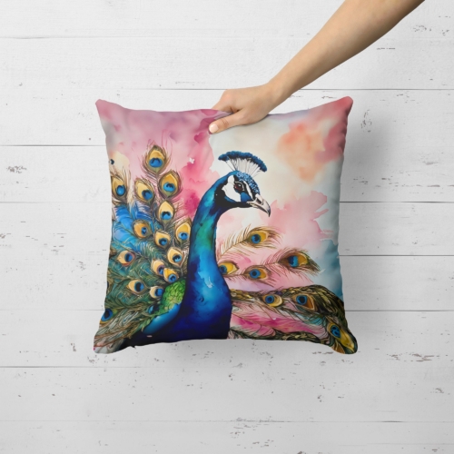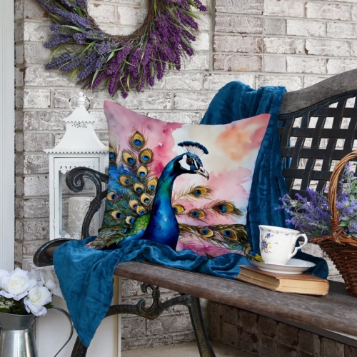 Throw Pillow featuring breed specific Peacock artwork. Revitalize your outdoor or indoor living space with Caroline’s Treasures 18×18 Fabric Decorative Pillow. With a generously sized dimension of approximately 18 inches by 18 inches, this pillow makes a comfortable and aesthetic addition to any seating area. Made from a unique, water-resistant material developed by Caroline’s Treasures, the pillow sham is 100% polyester fabric that’s durable and ready to weather any condition. Its vibrant, full-color artwork will not fade over time as it is dyed with color-fast dyes. Whether you place it on your patio furniture, porch, veranda, or indoor couch, its soft canvas fabric ensures a cozy experience. The pillow is handcrafted in the United States, featuring a sham created from three pieces of fabric and a polyester insert for enduring shape and overstuffed comfort. Despite being robustly built to endure the outdoors, it is as soft and snug as your favorite indoor cushions. Please note, as all our pillows are handmade, sizes may vary slightly, adding to the charm of this unique decorative item.