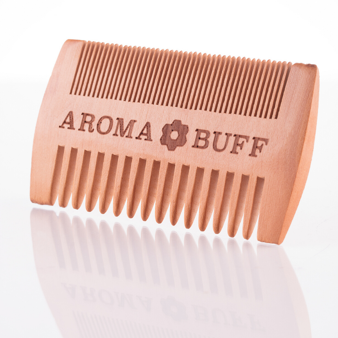 Designed with two sizes of comb for different beard types, and the distinctive AromaBuff logo, we have consciously chosen the wood from a tree that is plentiful and not under threat of extinction.