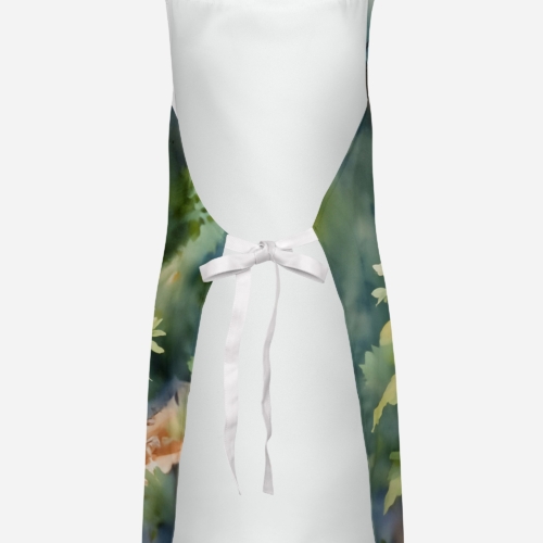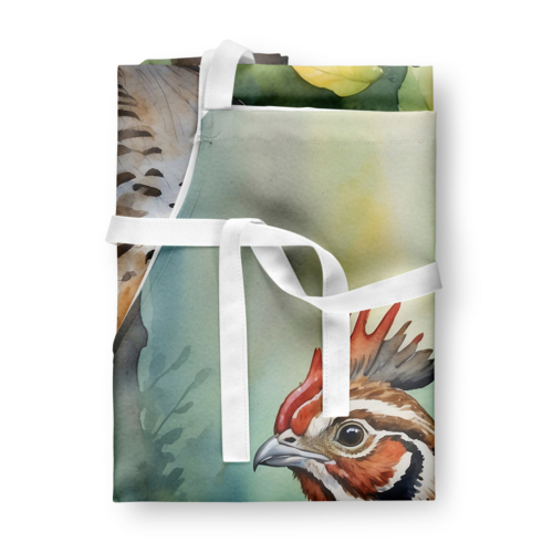 Apron featuring breed specific Ruffed Grouse artwork. Elevate your cooking, baking, and grilling experiences with our versatile Kitchen or BBQ Apron. This Bib Style apron isn’t just limited to culinary activities – it also serves as an excellent baking apron, artist apron, server apron, gardening apron, or even a dog grooming apron. The apron showcases vibrant full-color artwork contributed by one of our talented artists, bringing a dash of style to your daily tasks. With dimensions of approximately 27″W x 30″H, it provides ample coverage to protect your clothing from spills and splashes. Our apron is meticulously crafted from 100% Ultra Spun Polyester, known for its durability and lightweight nature. The apron comes with white tie straps, ensuring a comfortable and adjustable fit for all. It’s a perfect choice for kitchen apron enthusiasts, whether you are a woman or a man. Designed for easy maintenance, this apron is fully machine washable. The quick-drying polyester material actively reduces staining, keeping your apron looking fresh and new for longer. Our beautifully designed apron isn’t just a functional kitchen accessory – it’s a fashion statement in the culinary world!