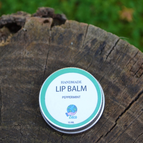 Handmade peppermint flavour lip balm with only natural ingredients, no harmful chemicals and not tested on animals.