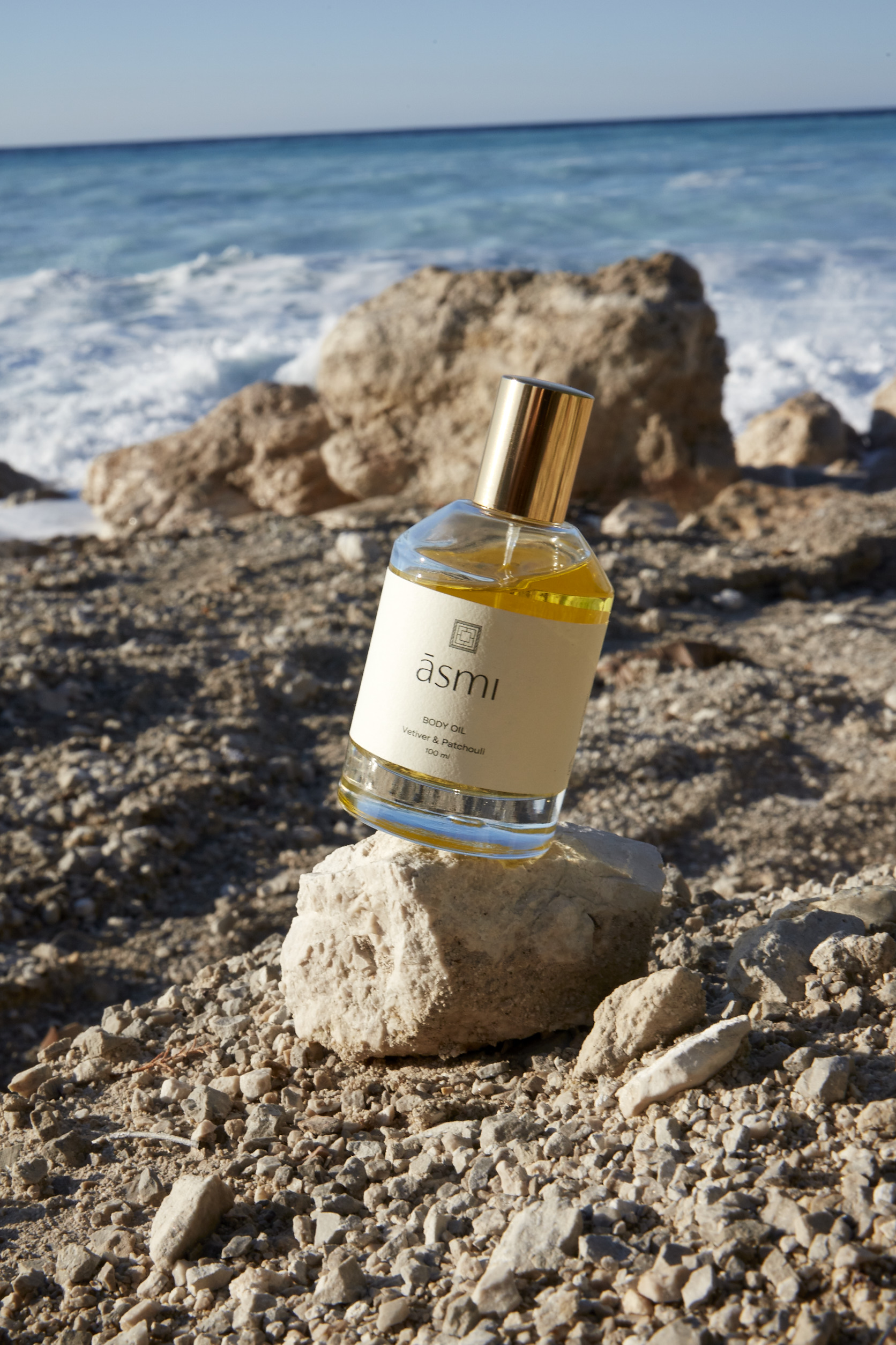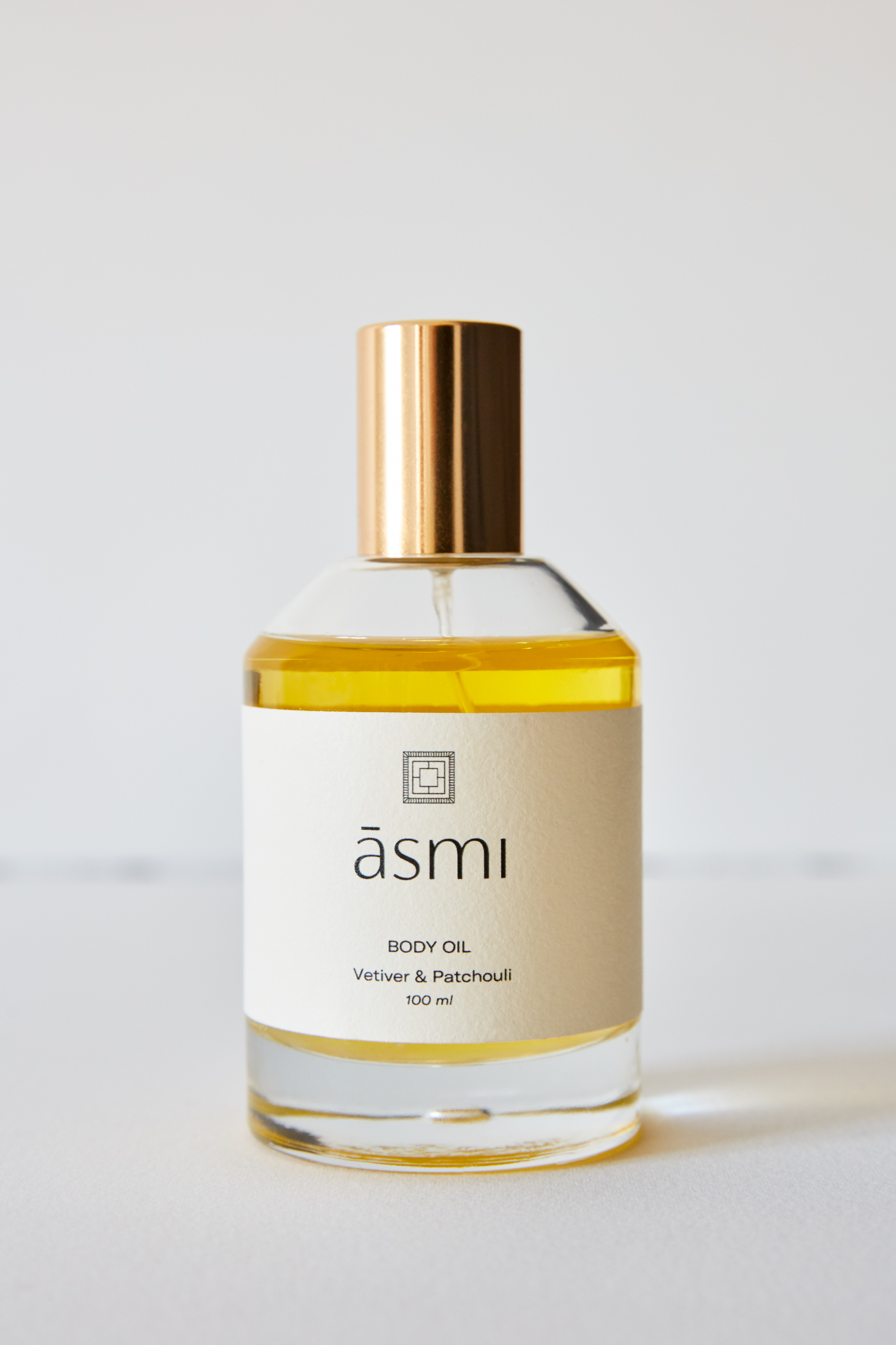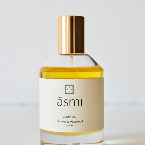 Spray a few times on your palm. Warm the oil by rubbing your palms together. Gently massage it around your neck and behind your ears, continuing to your collarbone, shoulders and forearms. Finally, place your palms together in front of your face. Take a deep breath. Feel the mystery of the Vetiver & Patchouli notes.