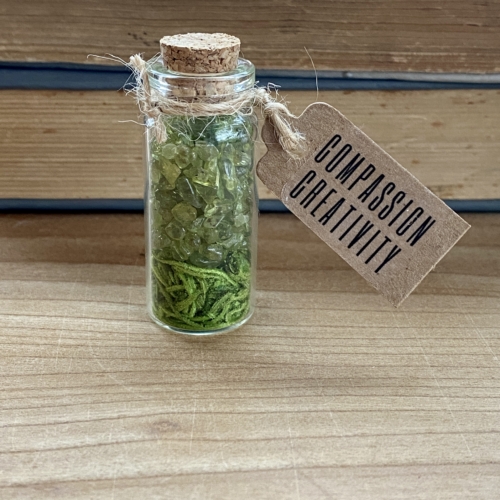 Peridot is the stone of compassion and creativity. It also calms anger, leaving its recipient with a feeling of peace, brings restful sleep, and harmony.