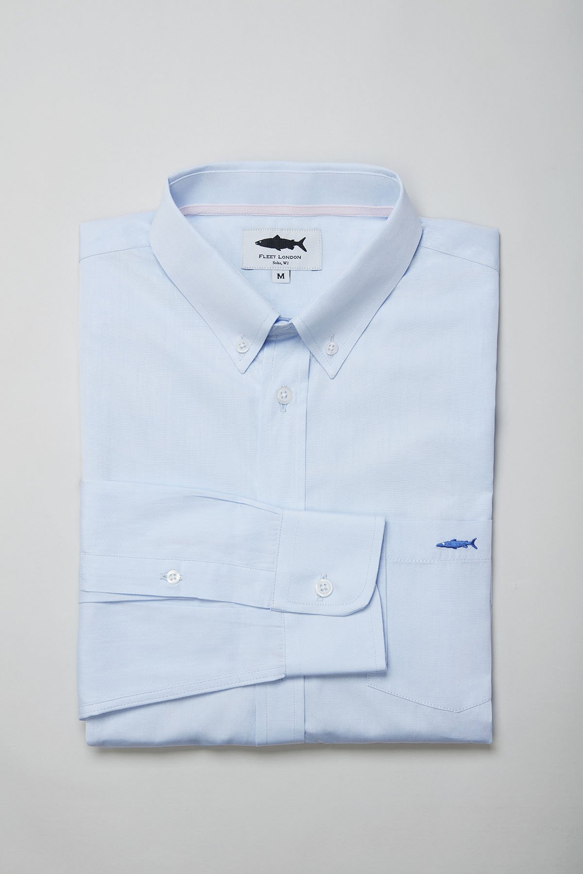 Made from 100% cotton poplin with a contrasting embroidered salmon logo on the pocket, and contrasting side seam gusset and collar and cuff placket taping. The shirts have a button collar, breast pocket and back loop and come with spare buttons in a tracing paper envelope.
