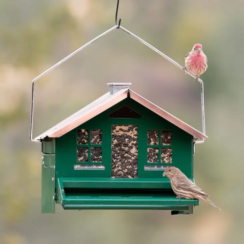 Perky-Pet 339-1SR Squirrel-Be-Gone II Home Style Bird Feeder with Chimney, Squirrel Proof Bird Feeder with Weight-Activated Perches, Large 8lb Capacity Outdoor Wild Bird Feeder