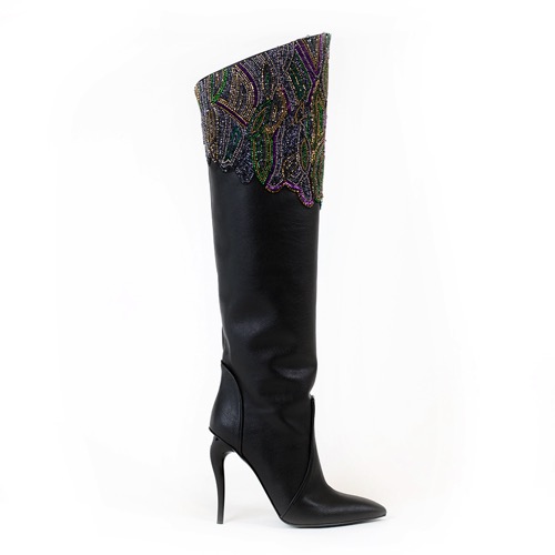 Designed in New York and crafted in Italy Persephone is made in our 100% polyurethane faux leather, and accented with a couture hand made embellishment. She sits on our 115mm Sylth heel outfitted with our curved rose gold logo cap. This shoe will make a statement – about your style and your values – both of which are enviable.