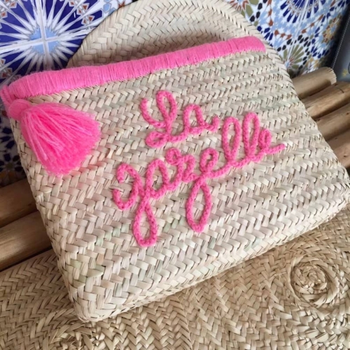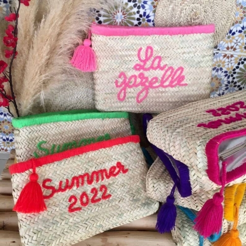 Personalized Straw Clutch – Handmade Embroidered Wool Design
