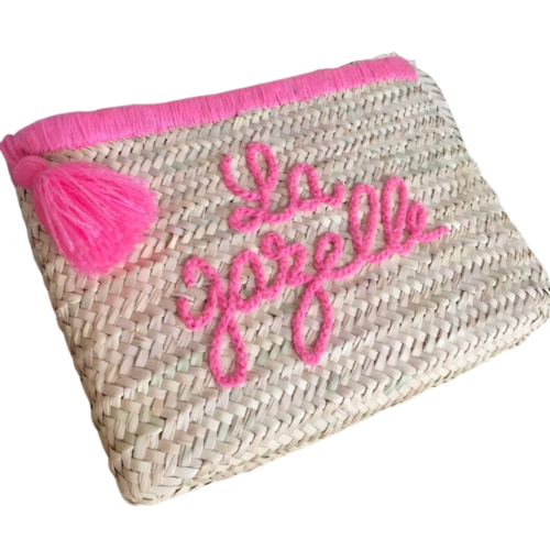 Personalized Straw Clutch – Handmade Embroidered Wool Design