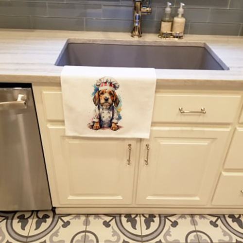 Kitchen Towel Set of 2 featuring breed specific Petit Basset Griffon Vendeen artwork. Spruce up your kitchen decor with Caroline’s Treasures Decorative White Kitchen Towel Set. This set of two dish towels showcases beautiful artwork from one of our talented artists, making them both practical and visually appealing. These towels are crafted from 100% cotton, offering excellent absorbency and durability, making them ideal for any kitchen task. Each white towel measures 19 inches by 28 inches, providing ample coverage for drying dishes or wiping up spills. The standout feature of these towels is the full-color artwork design printed on each one. They can serve as a vibrant accent in your kitchen, turning a functional item into a delightful piece of decor. When it comes to care, these towels are machine washable in cold water and can be dried on low heat. Remember to always use a pressing cloth when pressing the design, and avoid using bleach on the decorated towel. The Decorative White Kitchen Towel Set makes a great gift or a stylish addition to your own kitchen.