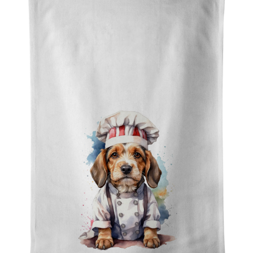 Kitchen Towel Set of 2 featuring breed specific Petit Basset Griffon Vendeen artwork. Spruce up your kitchen decor with Caroline’s Treasures Decorative White Kitchen Towel Set. This set of two dish towels showcases beautiful artwork from one of our talented artists, making them both practical and visually appealing. These towels are crafted from 100% cotton, offering excellent absorbency and durability, making them ideal for any kitchen task. Each white towel measures 19 inches by 28 inches, providing ample coverage for drying dishes or wiping up spills. The standout feature of these towels is the full-color artwork design printed on each one. They can serve as a vibrant accent in your kitchen, turning a functional item into a delightful piece of decor. When it comes to care, these towels are machine washable in cold water and can be dried on low heat. Remember to always use a pressing cloth when pressing the design, and avoid using bleach on the decorated towel. The Decorative White Kitchen Towel Set makes a great gift or a stylish addition to your own kitchen.