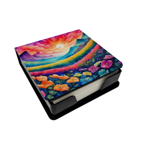 PU Leather Note Paper Holder featuring breed specific Petunias artwork. Elevate your workspace with this PU Leather Note Paper Holder, crafted to resemble luxurious leather without the use of animal products. Made from durable synthetic PU leather, it offers both a premium look and eco-friendly appeal. This note holder, compactly sized at 4.25 x 4.25 x 1.25 inches, includes about 160 sheets of 3.75 x 3.75-inch note paper—ideal for quick notes and reminders. An exclusive artist-designed cover makes each holder uniquely vibrant, adding a splash of color and personality to any desk or office. The discrete design keeps note paper hidden, maintaining a neat and organized workspace. Perfect as a gift or for personal use, this stylish holder is refillable with standard paper, ensuring long-lasting utility. A must-have for anyone seeking a sophisticated, artful touch to their workspace while supporting animal-friendly products. Add style, organization, and creativity to your everyday routine with this elegant note paper holder.