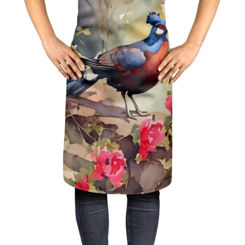 Apron featuring breed specific Pheasant artwork. Elevate your cooking, baking, and grilling experiences with our versatile Kitchen or BBQ Apron. This Bib Style apron isn’t just limited to culinary activities – it also serves as an excellent baking apron, artist apron, server apron, gardening apron, or even a dog grooming apron. The apron showcases vibrant full-color artwork contributed by one of our talented artists, bringing a dash of style to your daily tasks. With dimensions of approximately 27″W x 30″H, it provides ample coverage to protect your clothing from spills and splashes. Our apron is meticulously crafted from 100% Ultra Spun Polyester, known for its durability and lightweight nature. The apron comes with white tie straps, ensuring a comfortable and adjustable fit for all. It’s a perfect choice for kitchen apron enthusiasts, whether you are a woman or a man. Designed for easy maintenance, this apron is fully machine washable. The quick-drying polyester material actively reduces staining, keeping your apron looking fresh and new for longer. Our beautifully designed apron isn’t just a functional kitchen accessory – it’s a fashion statement in the culinary world!