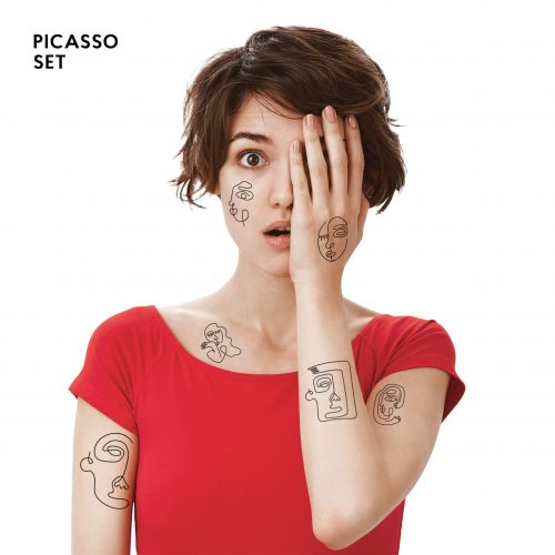 Inspired by the famous Picasso artworks motives our Picasso temporary tattoos set shows your great taste. Progressive and emotional silhouettes express your mood. Don`t forget to share one or two with your gallery buddy! The set contains 6 separate tattoos and an application sponge.
