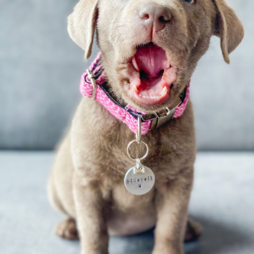 Experience the highest quality handcrafted dog collar, made to order in the UK. Created using luxurious velvet, quality yarn and with sizes to suit all breeds, this soft and elegant collar is perfect for any fashionable pup. Materials Used: Knitted Material: 55% Merino Lambswool & 45% Cotton Backed with a luxurious velvet for your dogs comfort Inner polypro webbing for strength Stainless steel & nickel plated metal fittings