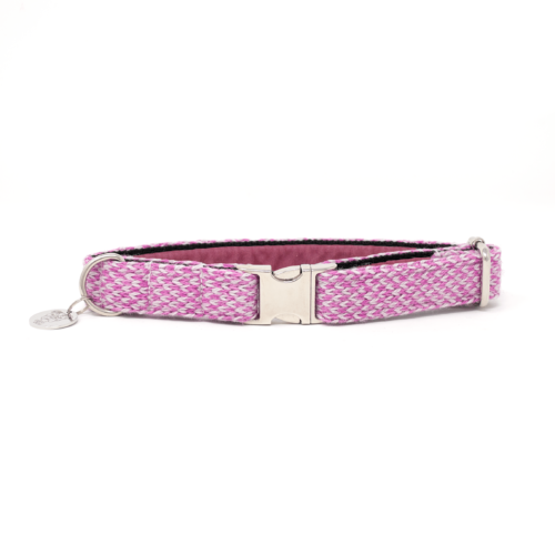 Experience the highest quality handcrafted dog collar, made to order in the UK. Created using luxurious velvet, quality yarn and with sizes to suit all breeds, this soft and elegant collar is perfect for any fashionable pup. Materials Used: Knitted Material: 55% Merino Lambswool & 45% Cotton Backed with a luxurious velvet for your dogs comfort Inner polypro webbing for strength Stainless steel & nickel plated metal fittings