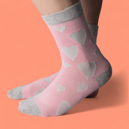 Add a little love to your day with our Love Hearts: Pink Ladies’ Bamboo Socks. These charming socks feature a soft grey base adorned with playful love heart patterns, bringing warmth and style to every step. Perfect for those who want to spread a little joy while enjoying the comfort of nature’s softest fabric.