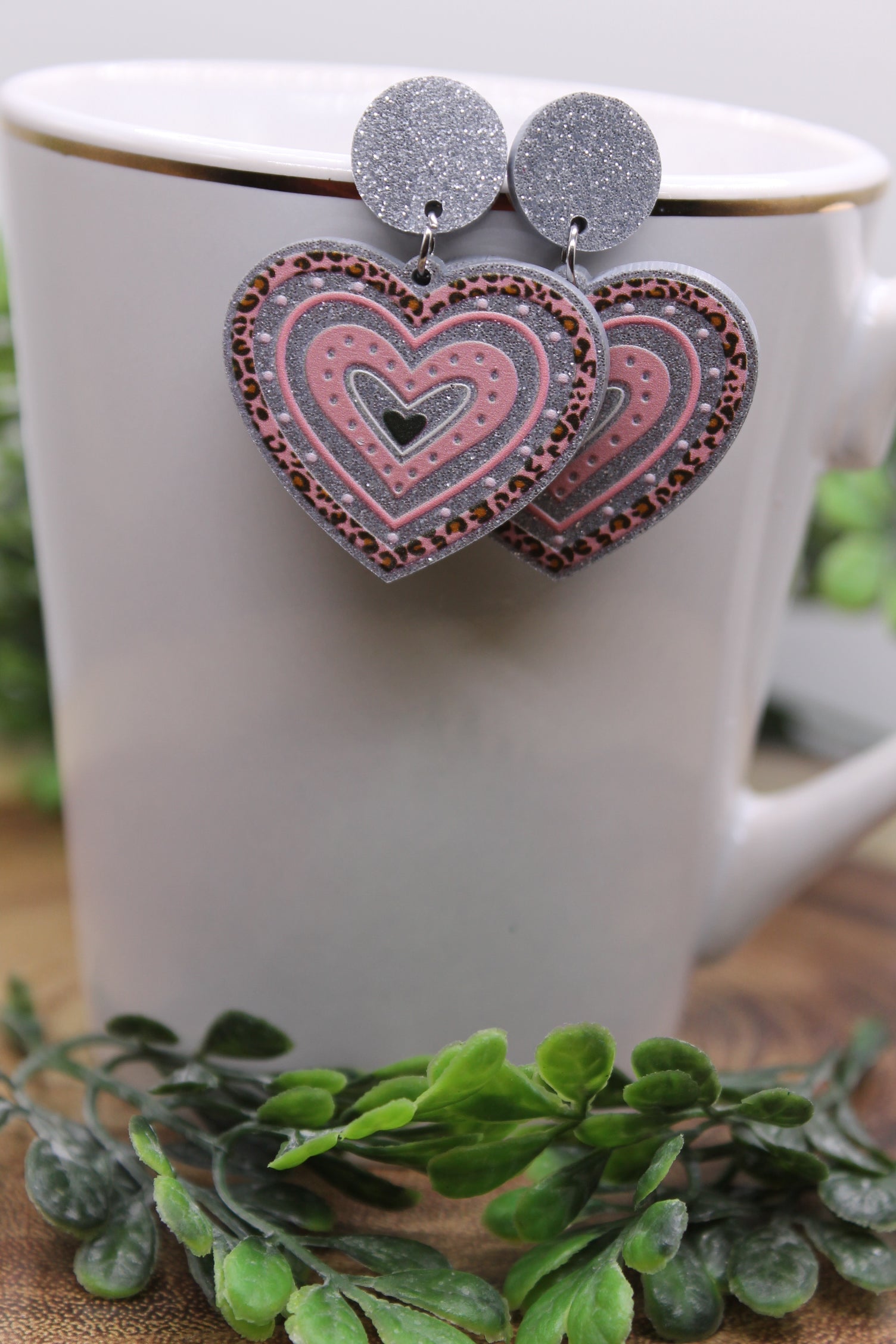 Pink & Silver Glitter Hearts Valentine’s Day Dangle Earrings