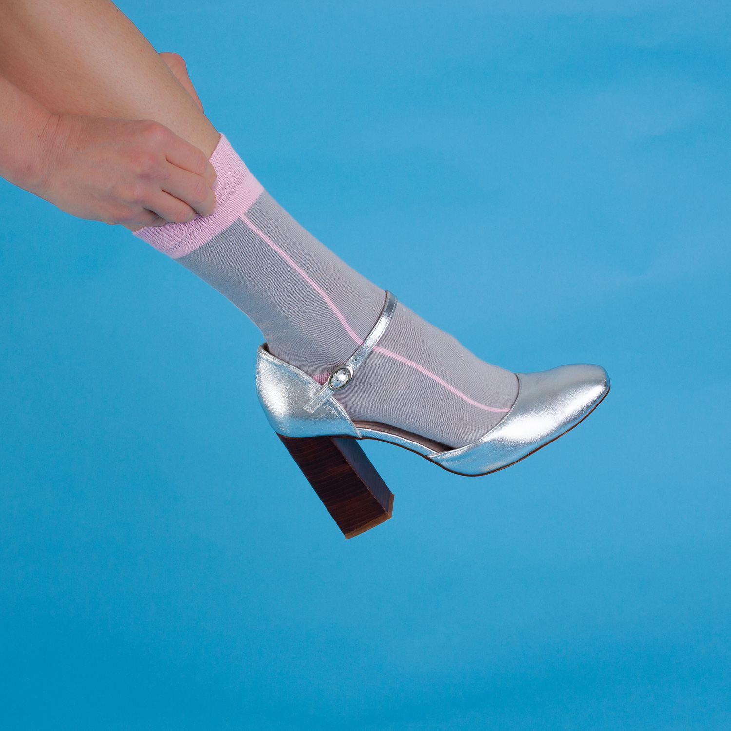 These classic design socks with a modern twist will add sophistication and class to your look. Our socks feature pink toe, cuff and heel on cool grey.