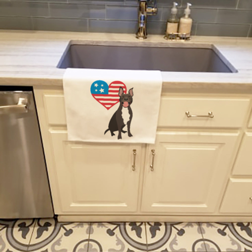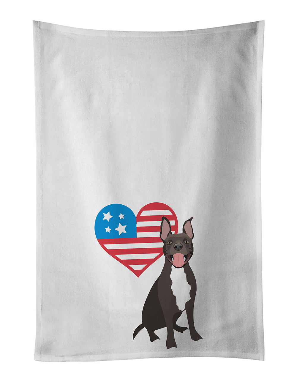 Kitchen Towel Set of 2 featuring breed specific Pit Bull Terrier artwork. This Kitchen Towel Set of 2 is from Caroline’s Treasures collection Patriotic USA. Spruce up your kitchen decor with Caroline’s Treasures Decorative White Kitchen Towel Set. This set of two dish towels showcases beautiful artwork from one of our talented artists, making them both practical and visually appealing. These towels are crafted from 100% cotton, offering excellent absorbency and durability, making them ideal for any kitchen task. Each white towel measures 19 inches by 28 inches, providing ample coverage for drying dishes or wiping up spills. The standout feature of these towels is the full-color artwork design printed on each one. They can serve as a vibrant accent in your kitchen, turning a functional item into a delightful piece of decor. When it comes to care, these towels are machine washable in cold water and can be dried on low heat. Remember to always use a pressing cloth when pressing the design, and avoid using bleach on the decorated towel. The Decorative White Kitchen Towel Set makes a great gift or a stylish addition to your own kitchen.