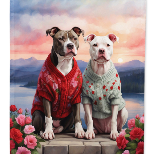 House Flag featuring breed specific Pit Bull Terrier artwork. Celebrate Valentine’s Day with this Valentine’s Day Large Flag. Presenting our Heavy Duty Polyester House Size Decorative Sleeve Pole Flag, a vibrant addition to enhance the aesthetic appeal of your home. This large decorative flag, measuring approximately 28 x 40 inches, offers ample coverage and visibility. Each flag is meticulously sewn and made individually, ensuring a unique piece that may slightly vary in size. It’s a sleeve pole flag, designed to fit a standard decorative flag pole effortlessly. Please note that the flag pole and bracket are not included and should be purchased separately. What sets our flag apart is its dual-sided print. The design is mirrored on both sides of the fabric, allowing for uniform visibility regardless of the angle. Printed in full color, our flag showcases vibrant hues that truly stand out. To ensure lasting vibrancy and durability, the dyes are heat-set into the fabric. This ensures your flag remains bright and captivating through various weather conditions. Elevate the look of your home with our Heavy Duty Polyester House Size Decorative Sleeve Pole Flag!