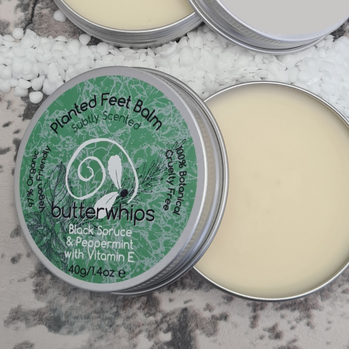 The fresh scents of garden and forest combined, Peppermint, Black Spruce and added Vitamin E will ease your tired feet and soften hard skin.