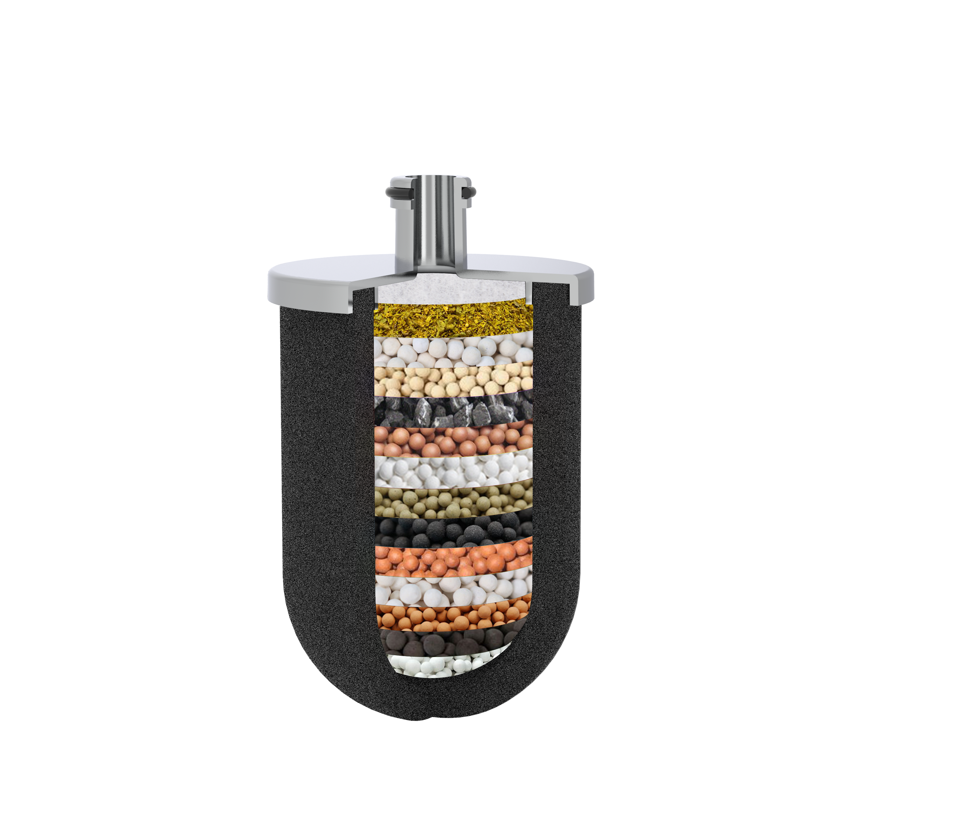 This top-quality shower filter consists of 15 stage filtration, including a proprietary NSF 42 compliant carbon block, Vitamin C, NSF certified KDF imported from the USA, far-infrared balls, germanium shower balls, and other mineral balls that infuse water with beneficial elements.