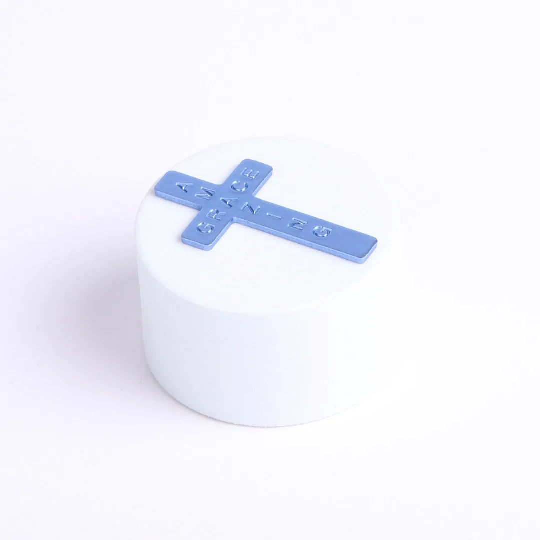 Featuring the message Amazing Grace on a blue colored cross.