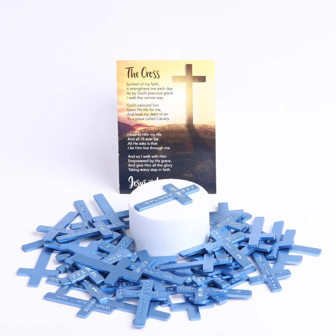 Each blue-colored cross features the powerful message God Answers Prayer, making it a meaningful token of faith to share with friends, family, or strangers. Spread hope and encouragement with these pocket crosses as a tool for ministry and a symbol of faith that is both meaningful and easy to carry.