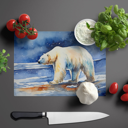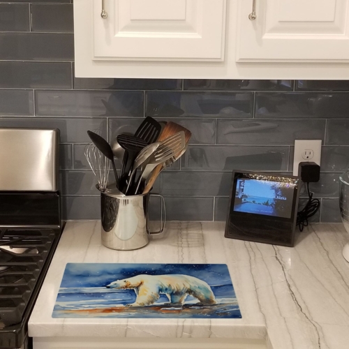 Glass Cutting Board featuring breed specific Polar Bear artwork. Introduce your kitchen to the vibrant, large Decorative Glass Cutting Board from Caroline’s Treasures. Crafted from resilient tempered glass, this board is not only a utilitarian necessity but also a colorful art piece. With its generous dimensions of 15 inches in height and 12 inches in length, it offers ample space for all your cutting needs. Every piece showcases captivating artwork from distinguished artists, bringing an aesthetic edge to your kitchen. Beyond its attractive design, this cutting board ensures your countertop stays pristine and unscathed, owing to its heat-resistant properties. Engineered with user convenience in mind, it features non-skid feet for stability, and rounded corners for additional safety. Its robust construction renders it virtually unbreakable, guaranteeing longevity. The board comes with protective feet bumpers, maintaining its position during use. This product is recommended to be hand washed only. Proudly printed and assembled in the United States, this cutting board exemplifies superior craftsmanship. With Caroline’s Treasures’ Decorative Glass Cutting Board, you’re investing in a blend of functionality and artistic flair.