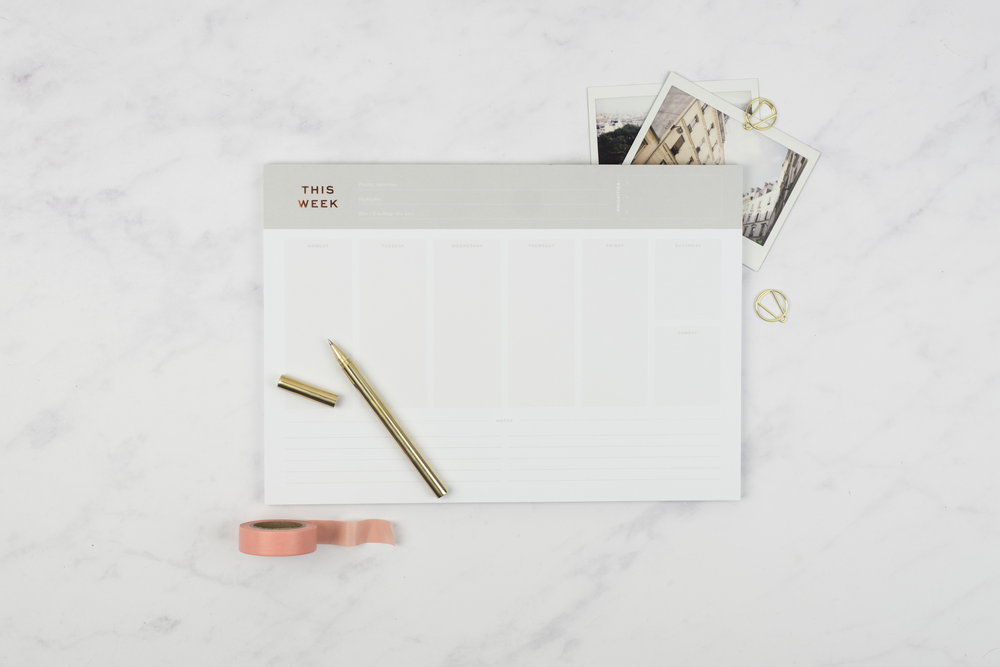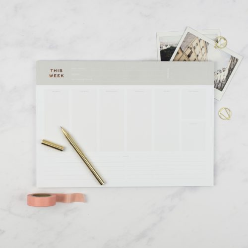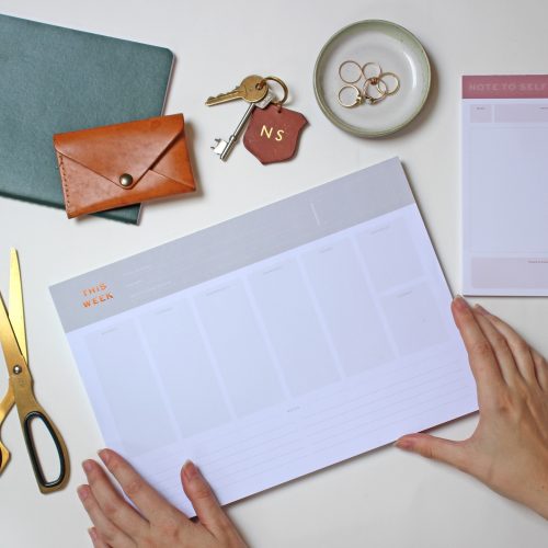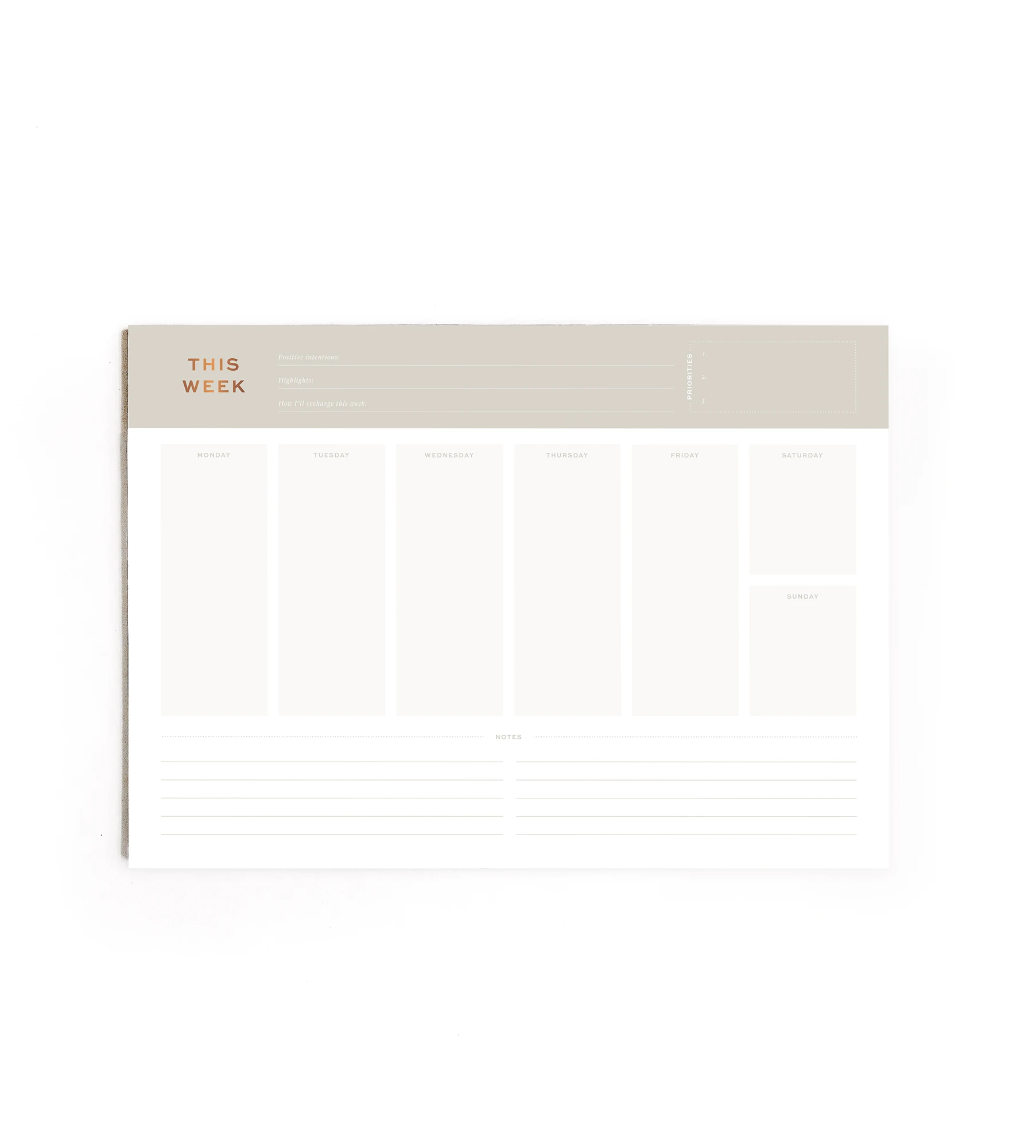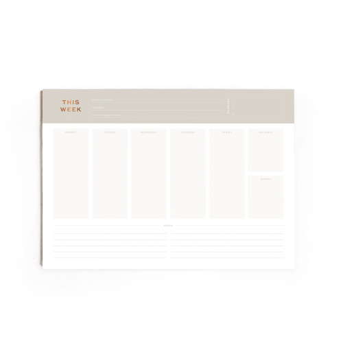 Tackle your week head-on with our A4 desktop planner. With gentle prompts to note down your intentions, priorities, and note special highlights, our desktop planner will help you stay positive, motivated, and in control for the whole week. Bonus: with ample space for all your appointments, notes and ideas, this will be the only notepad you’ll need on your desk – keeping your workspace organized and mind free of clutter.