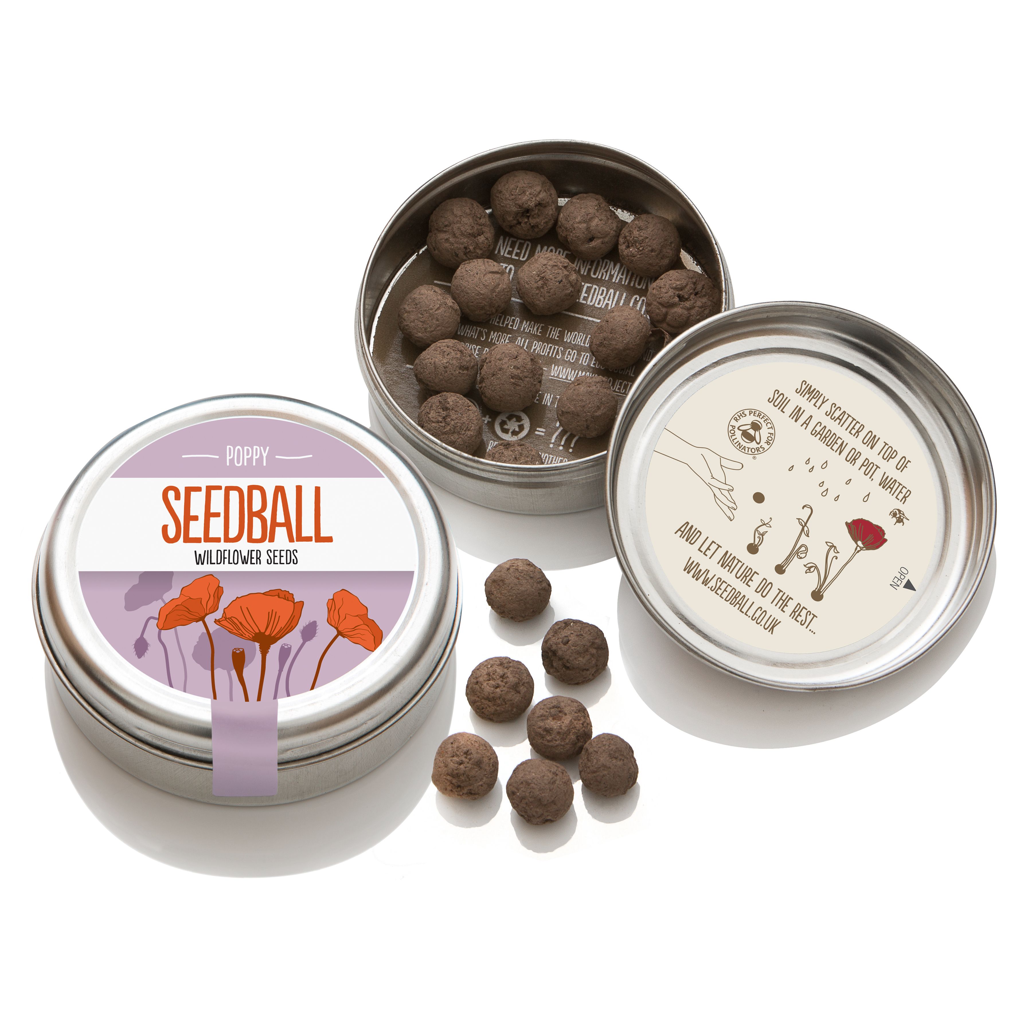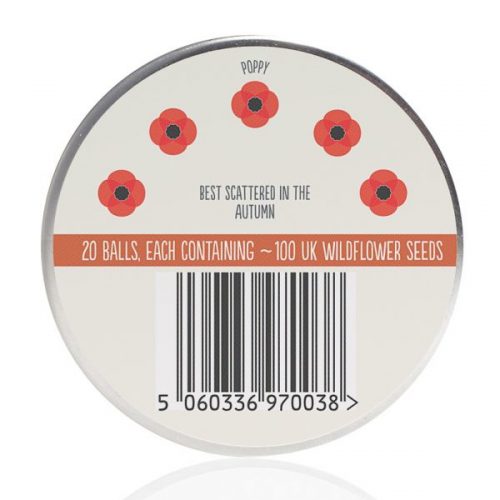 Each tin contains 20 seed balls which will provide coverage for 1 square metre in a garden, or 3-5 medium sized pots. Each ball contains around 100 poppy seeds.