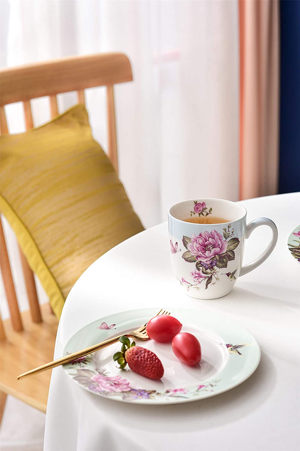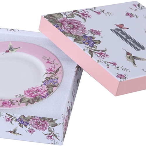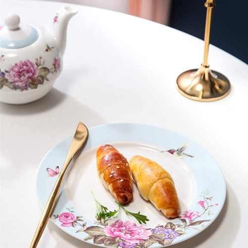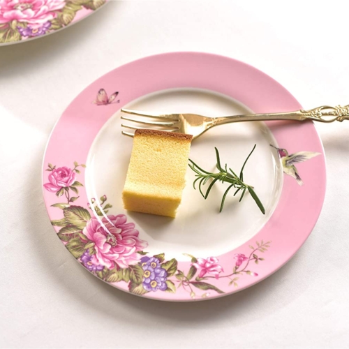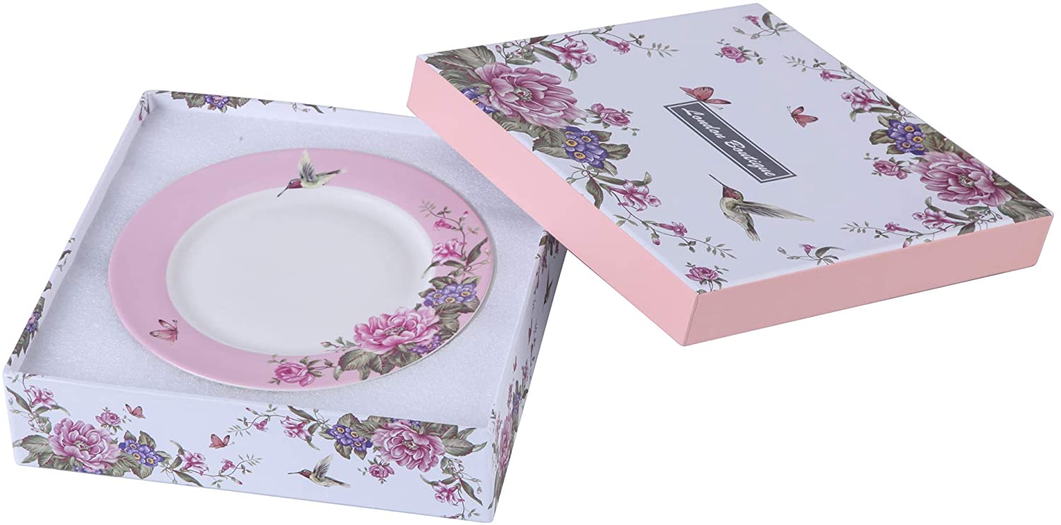 Porcelain Side Dessert Plates 7 Inches Wide Rimmed Shabby Chic Vintage Bird Butterly Floral Set 4 in Gift Box (1 Set)