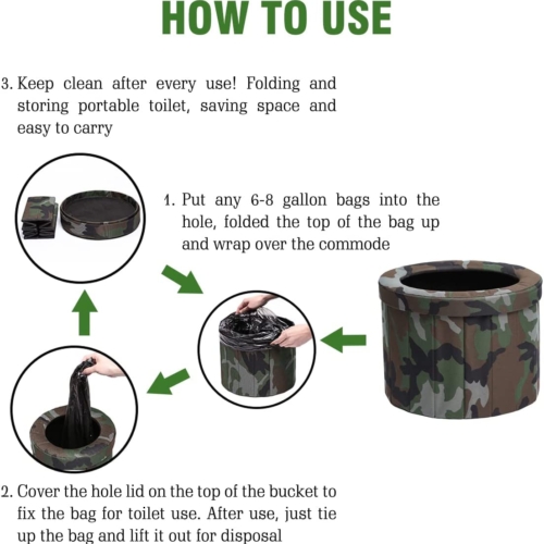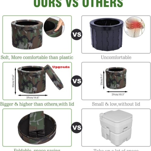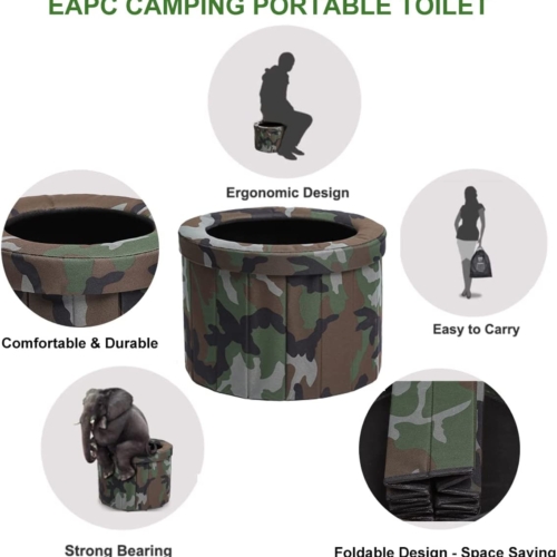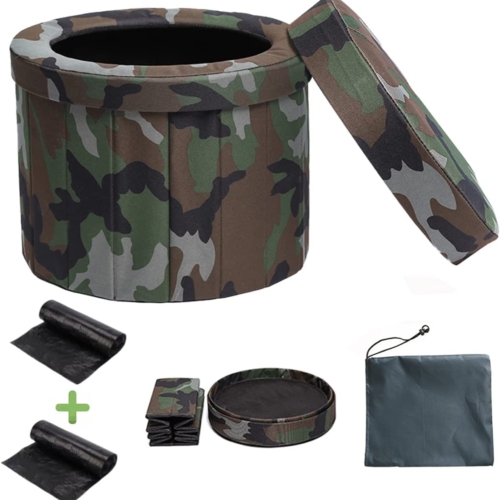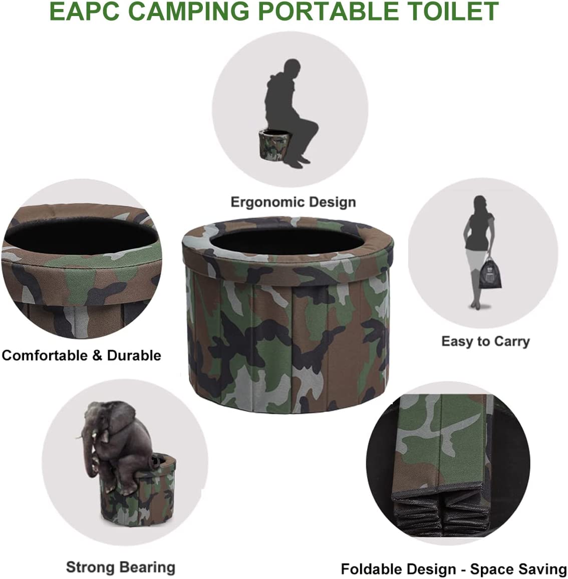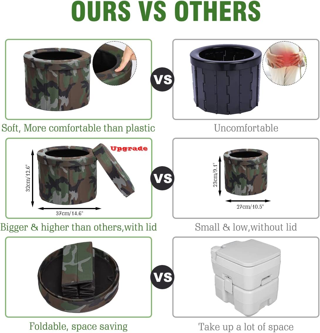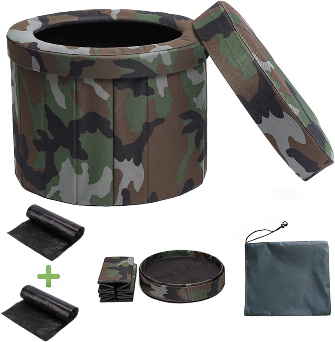 Upgrade Oval Portable Toilet for Camping, Folding Portable Potty Travel Toilet for Adults with Bags & Lid, Camping Toilet Bucket for Hiking/Long Trip/Traffic Jam, Camouflage color