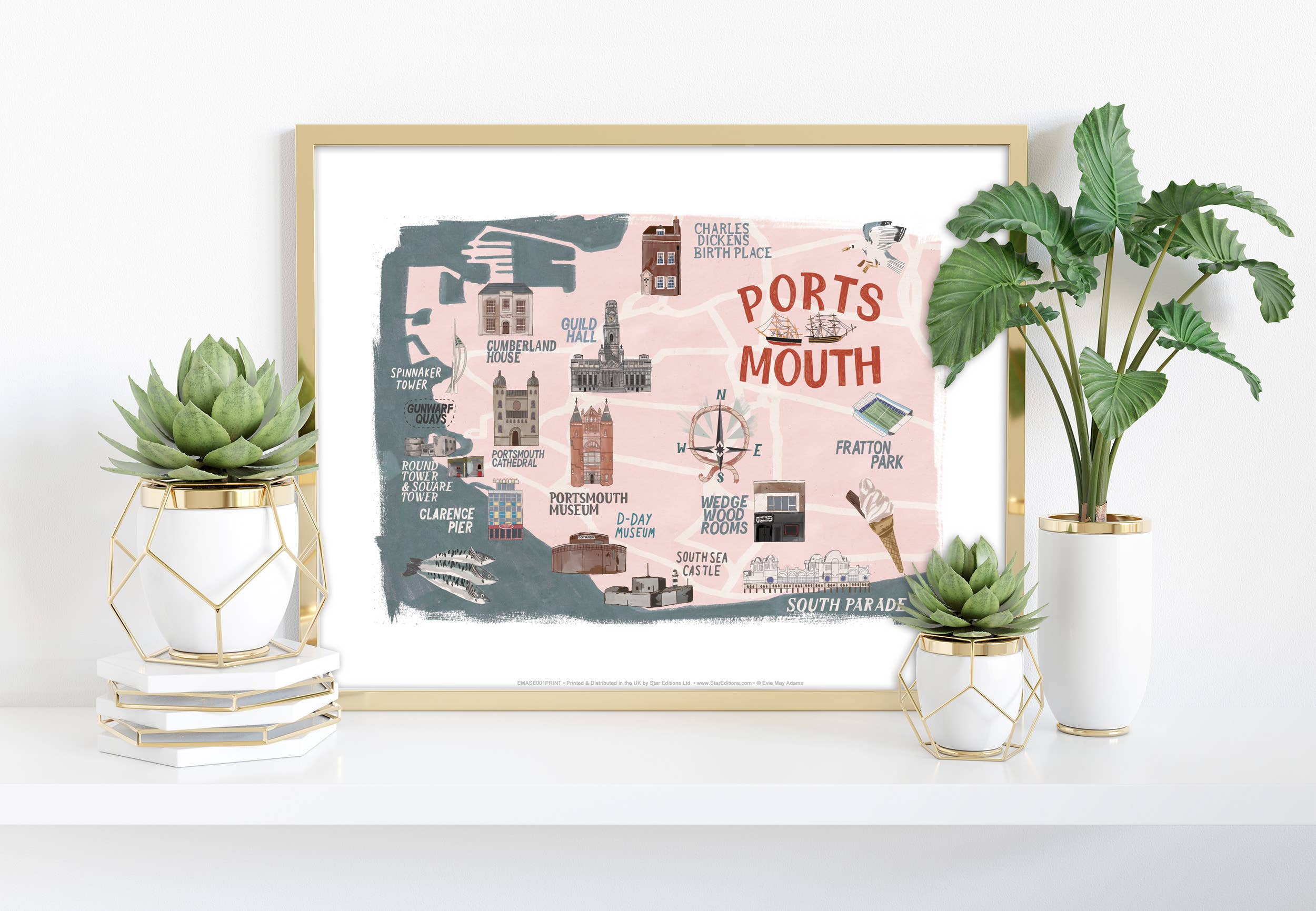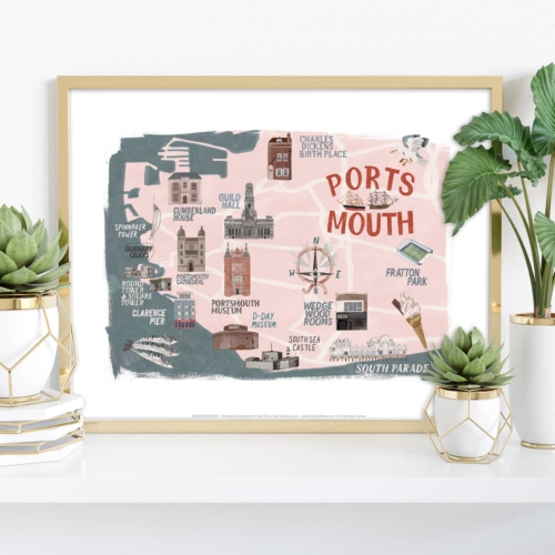 Premium Portsmouth landmarks art print measures 11×14 inches in size (28cm x 35.5cm).