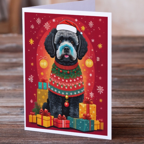 Greeting Cards Pack of 8 featuring breed specific Portuguese Water Dog artwork. Celebrate Christmas with this Christmas . Celebrate special moments with Caroline’s Treasures Printed Greeting Card Pack. This pack includes eight beautifully folded 5×7 cards, accompanied by eight matching white envelopes. With blank interiors, these cards provide ample space for your personalized messages and heartfelt holiday greetings. Each card features captivating full-color artwork, meticulously printed in our facility on high-quality 80 lb cover stock or 216 GSM. The super smooth finish of the white cards enhances the visual impact of the artwork, creating a truly stunning presentation. Designed by our talented in-house artists or licensed artists, the artwork on these cards showcases their creativity and attention to detail. From vibrant illustrations to captivating designs, each card tells its own unique story. Whether it’s for birthdays, anniversaries, holidays, or any special occasion, Caroline’s Treasures Greeting Card Pack is the perfect way to convey your heartfelt sentiments. Share joy, love, and warm wishes with these exquisite cards and make every moment unforgettable.